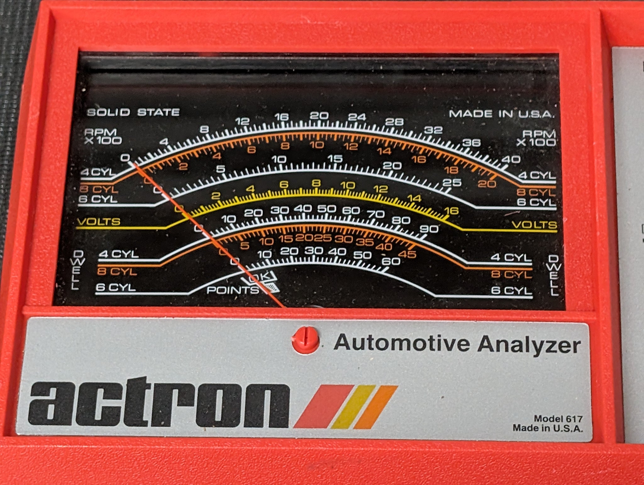 Made in USA ACTRON Analyzer Tach/Dwell/Voltmeter for 12 Volt Electronic or Conventional Ignition Systems Model No 617
