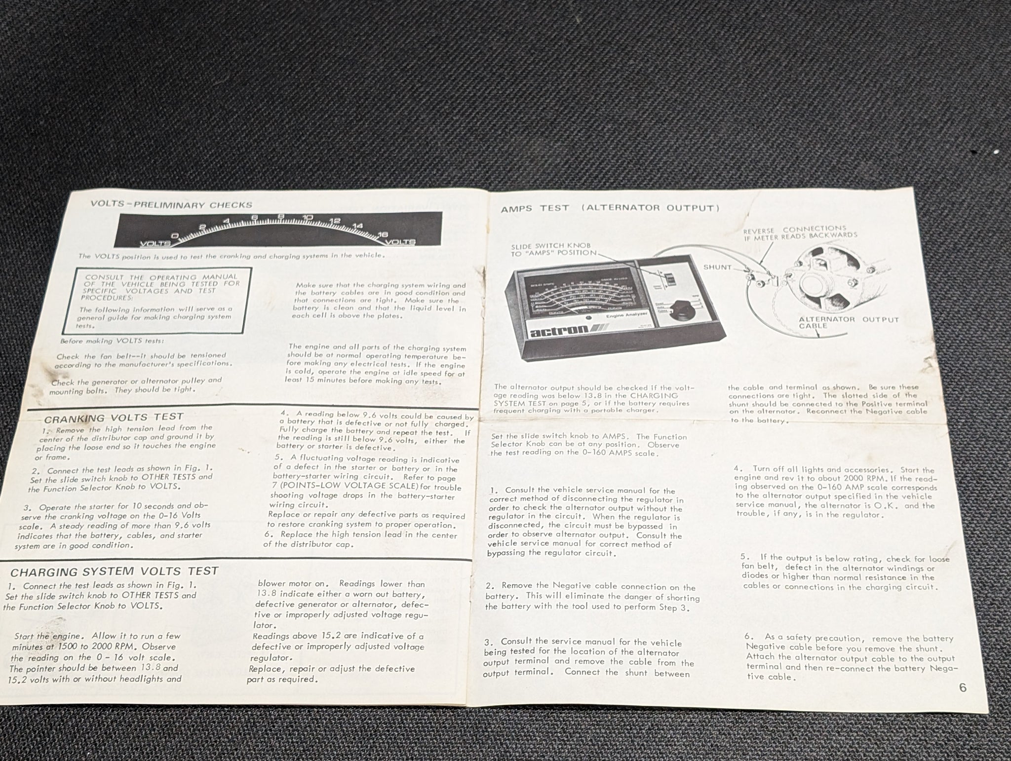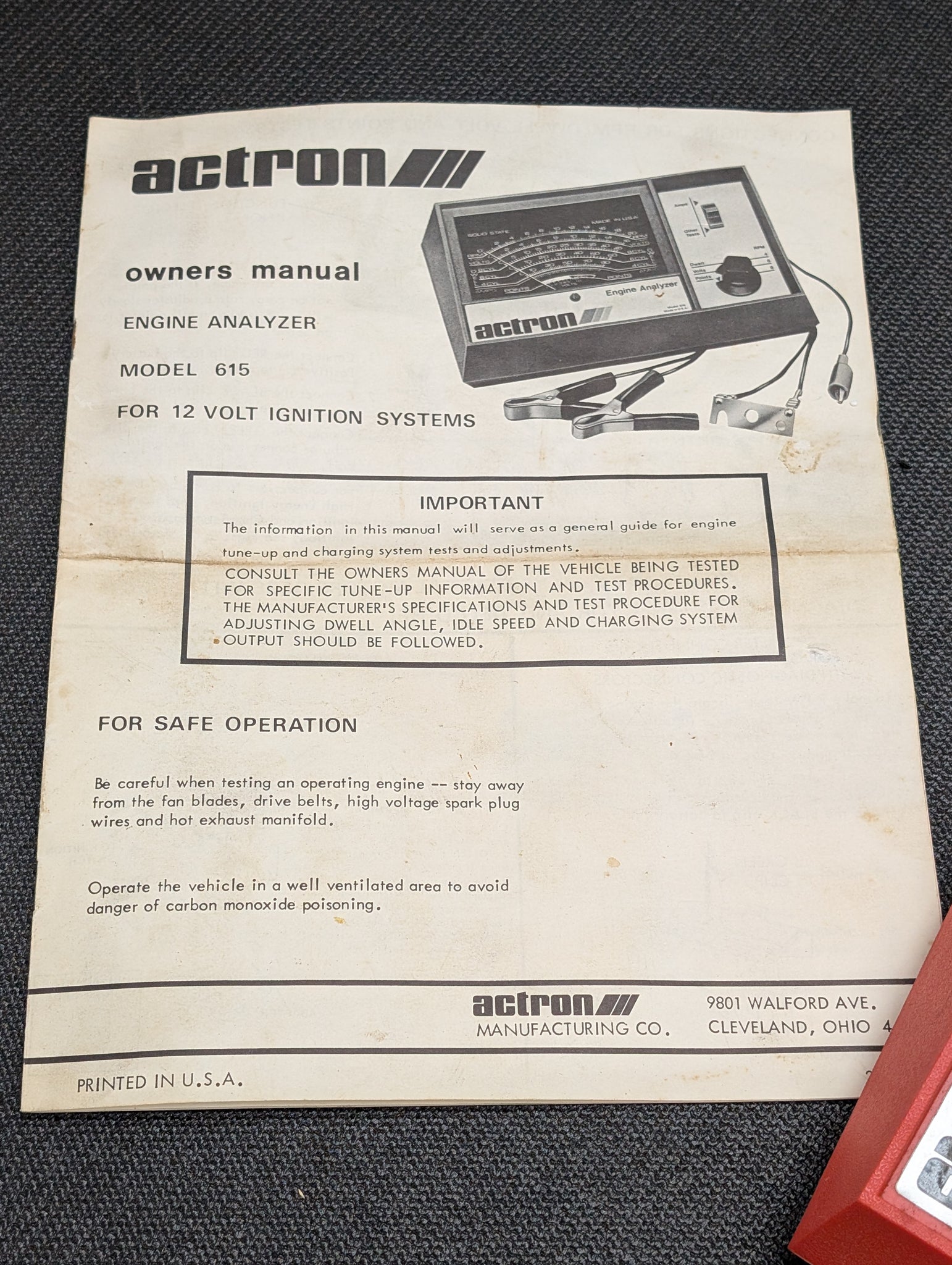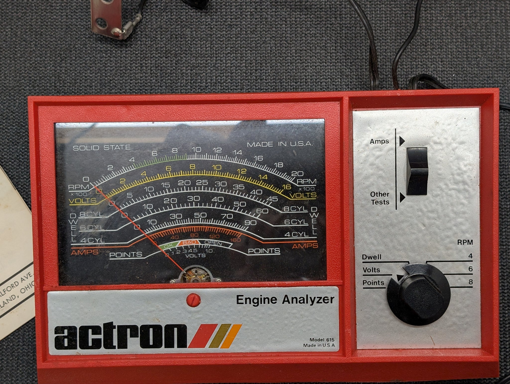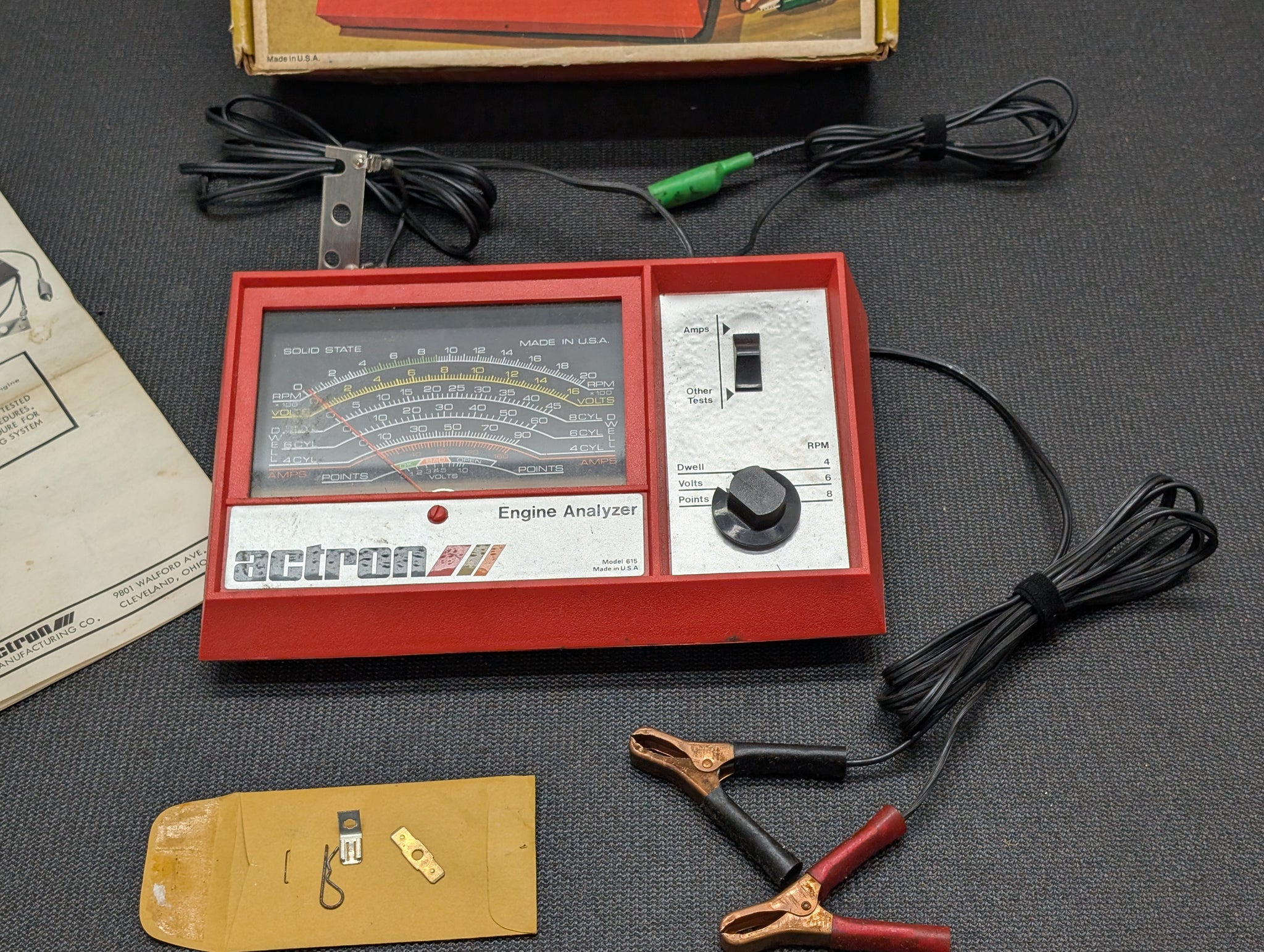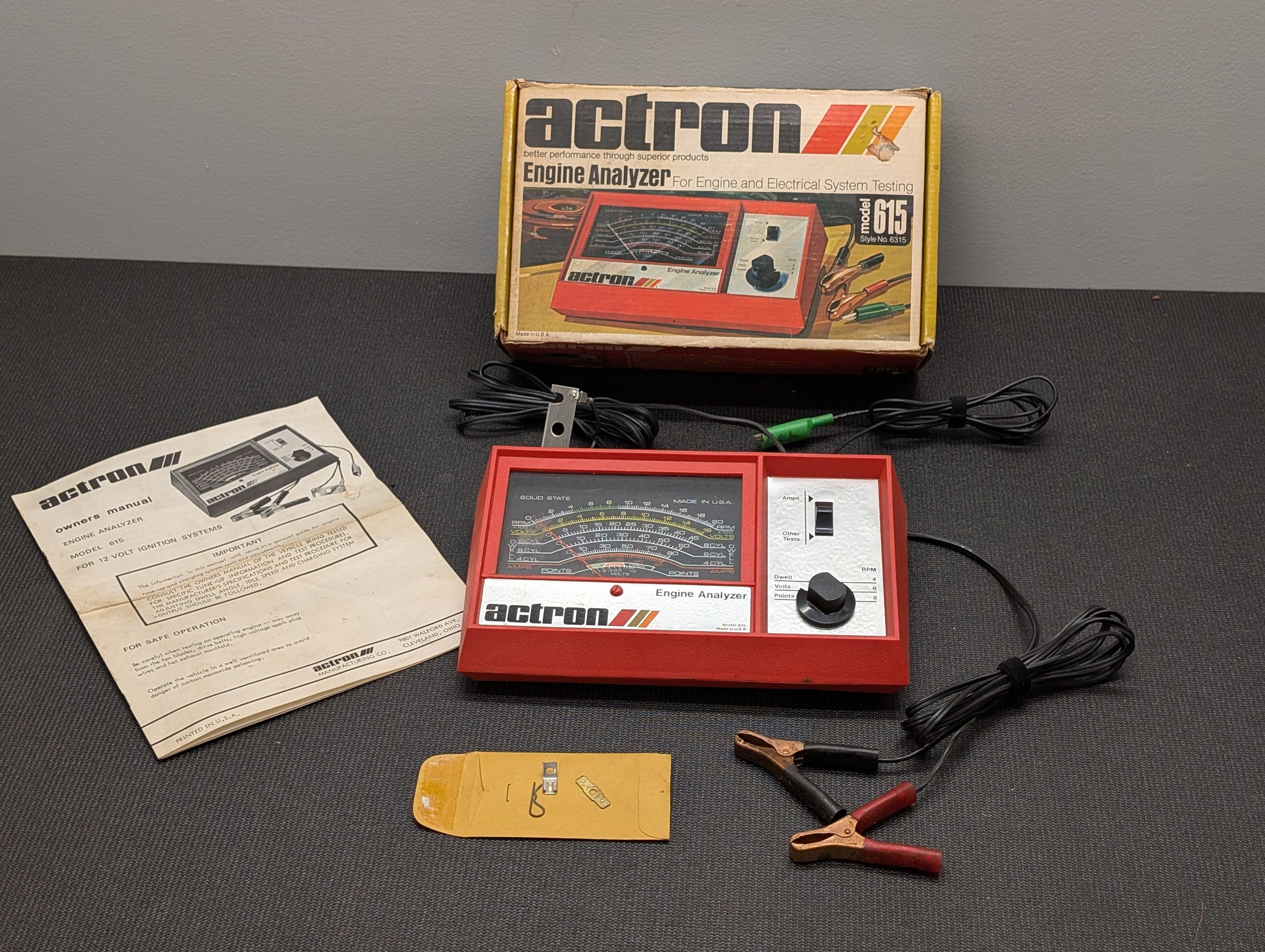 Made in USA ACTRON Analyzer Tach/Dwell/Voltmeter for 12 Volt Electronic or Conventional Ignition Systems Model No 615