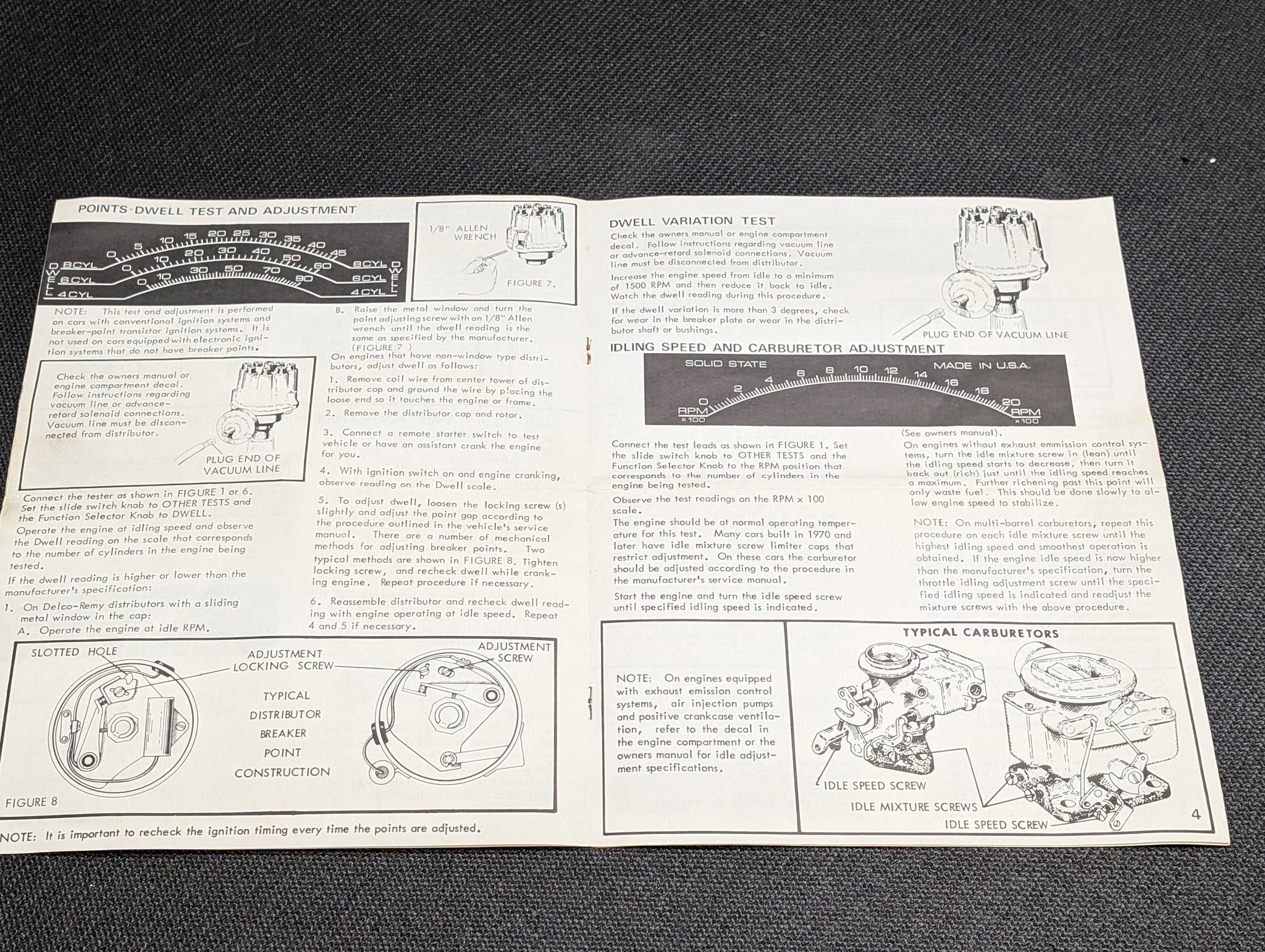 This analyzer has been hardly used and is in very good condition. The box shows evidence of multiple moves but the meter spiffy-clean. I have owned this ~35 years and just once used it. I just tested it and it works flawlessly. This analyzer tests 12 volt conventional & electronic ignition systems using vehicles battery 4, 6 or 8 cylinders domestic or imported. It is housed in a red polycarbonate housing with a 6" meter. No batteries are required, it is powered from the car's 12v system.