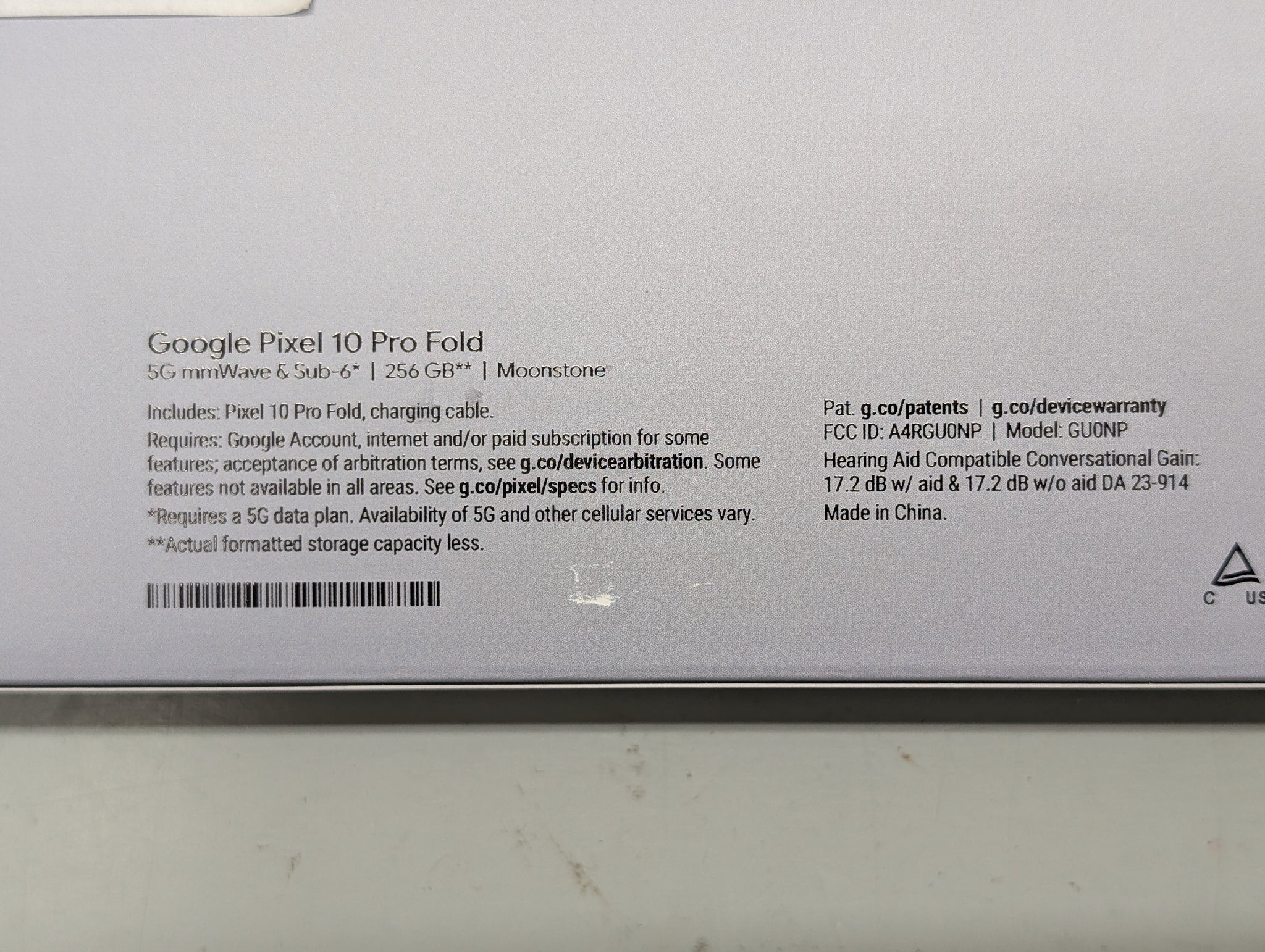I just received this from Google, I bought so I wouldn't lose an expiring Store Credit of and I'm selling it because I don't need a fold and I'd rather have my $$ back, my $300 loss is your gain. This is a USA market Pixel 10 Pro Fold Moonstone - 256 GB (Unlocked) under warranty.