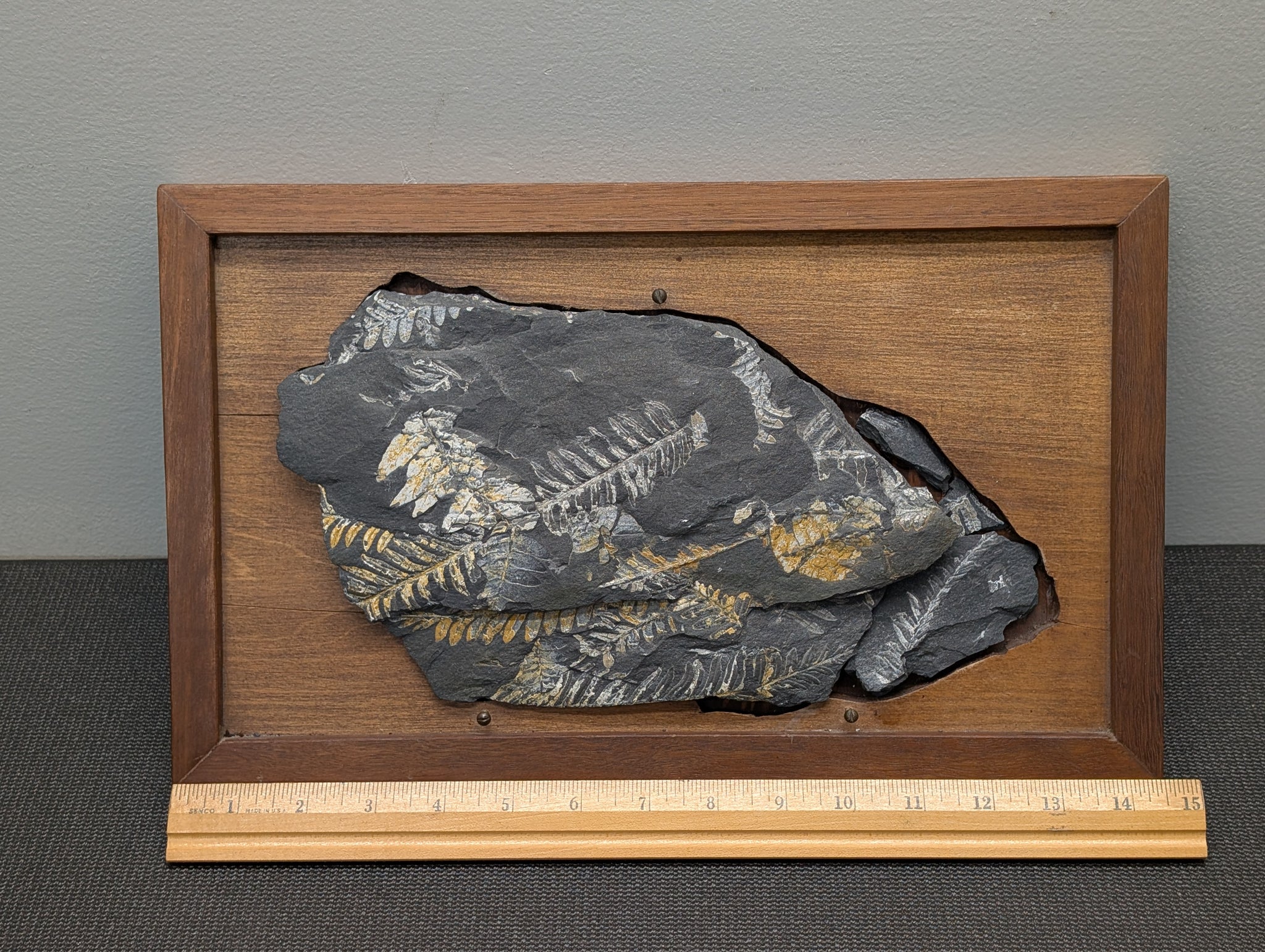 Museum Quality Carboniferous Fern Fossil St. Clair Mine PA #6, Walnut Mounted
