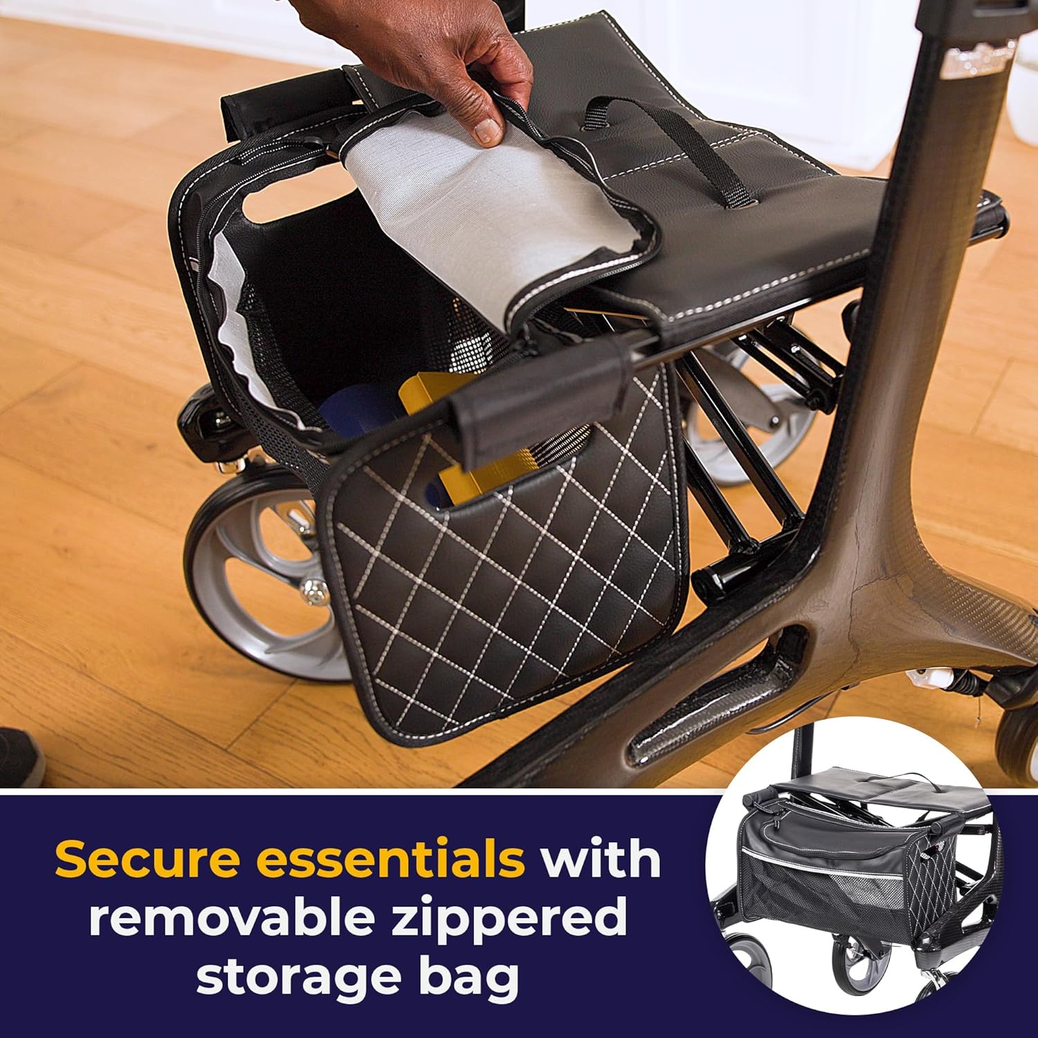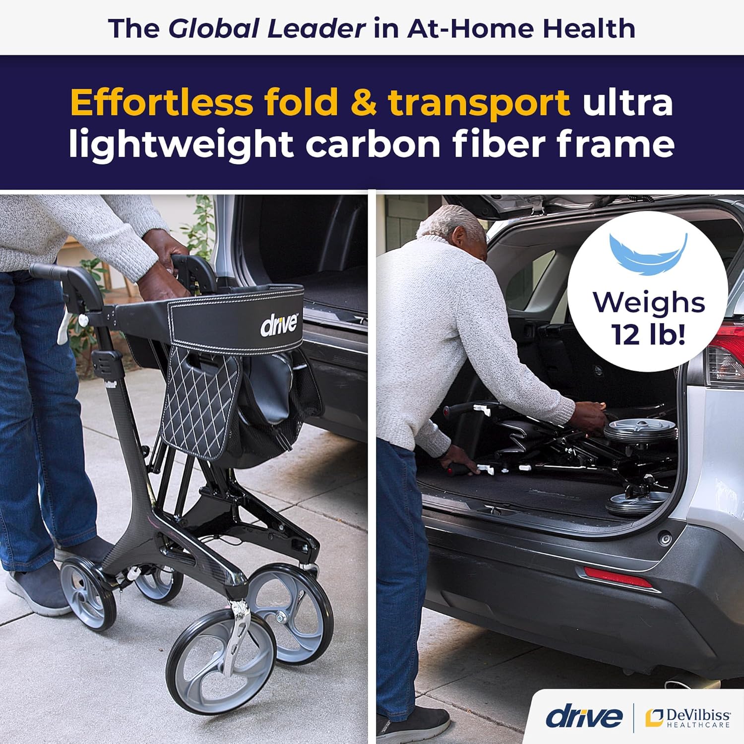 Drive Medical Lightweight Carbon Fiber RTL10266CF Nitro Elite CF Foldable Rollator Walker with Seat, Black