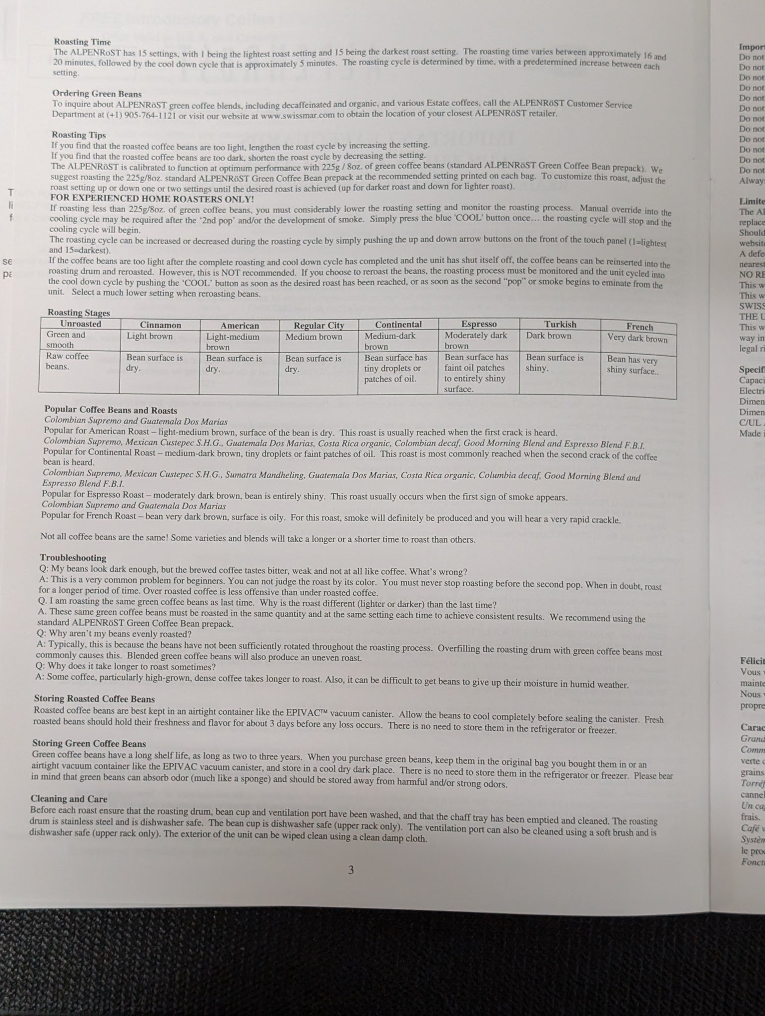 Swissmar Alpenrost Coffee Bean Roaster Home Rotary Drum